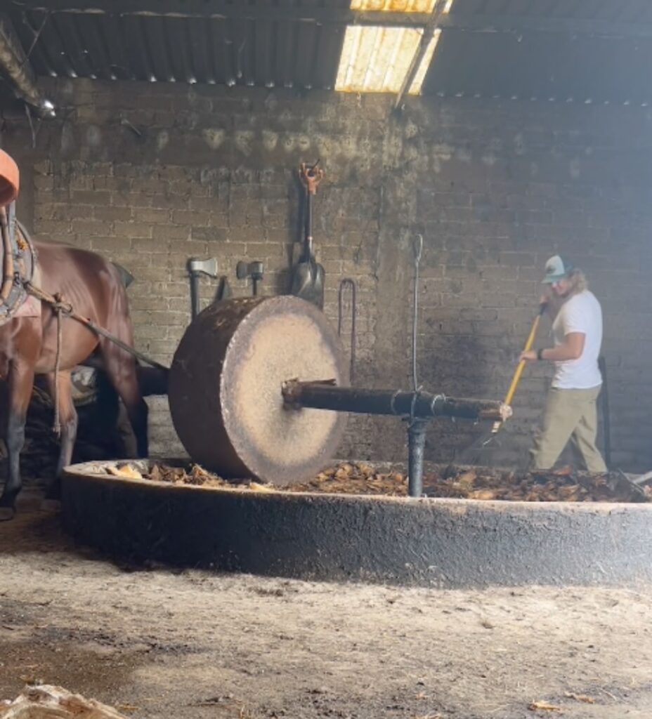 My time at the Palenque was humbling. The work was both educational and physically demanding. As an apprentice, I took on foundational tasks—cutting wood, moving horse manure, handling agave waste (bagasse), and cleaning the distillation areas. At the same time, I participated in every phase of the distillation process: harvesting, cooking, crushing, fermentation, and distillation. Being involved in each step gave me a deeper appreciation for the hard work, passion, and dedication behind every batch of O’Kahan Agave Mezcal.