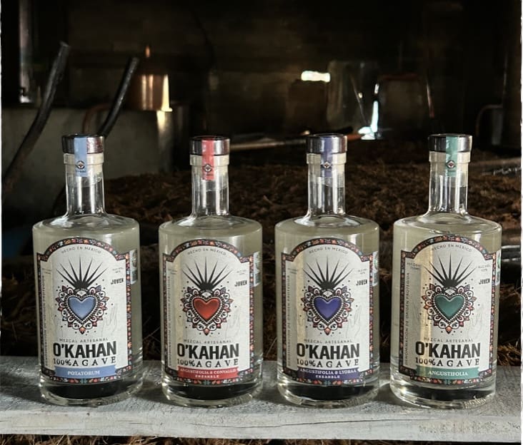 Fast forward six months—I had just completed my first month as an Aprendiz de Mezcalero in Mitla, Oaxaca. I returned to the U.S. with 16 bottles of mezcal I helped distill from start to finish. Looking back, it’s funny: the bottles were all different shapes and sizes, with the first O’Kahan Agave label prototypes scotch-taped on by hand in Mexico. I packed them into two suitcases I’d picked up locally and headed to the airport.