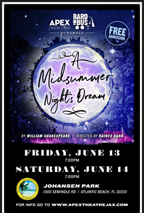 As part of the City of Atlantic Beach’s Theatre in the Park series, this beloved Shakespearean comedy will delight audiences of all ages with its whimsical world of fairies, tangled lovers, and theatrical chaos.